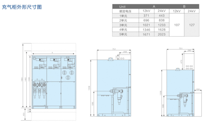 XGN□-12/24系列全绝缘全封闭充气式金属开关设备(以下简称充气柜)是一个完全密封的系统,其所有带电部分以及开关密封在不锈钢的壳体内。整个开关装置不受外部环境条件的影响,从而可以确保运行可靠性及人身安全,并且实现了免维护。通过选择可扩展母线,可以实现任何组合,达到模块化。扩展母线完全绝缘和屏蔽,确保了高可靠性和安全性。充气柜同时可以提供工业化的自动化解决方案,形成了智能化开关的概念,并将现场安装及调试工作量降至最低。